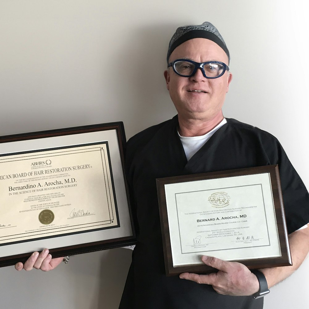 Since 2002, Bernardino A. Arocha, M.D. has been providing patients throughout Houston and beyond with customized hair restoration procedures and truly transformative results. His interest in hair restoration began in his 20s when he started to experience hair loss himself. He understands the psychological and emotional toll hair loss can have on an individual, which is why he has dedicated his career to helping patients experience the same elevated quality of life that hair transplantation has provided him.